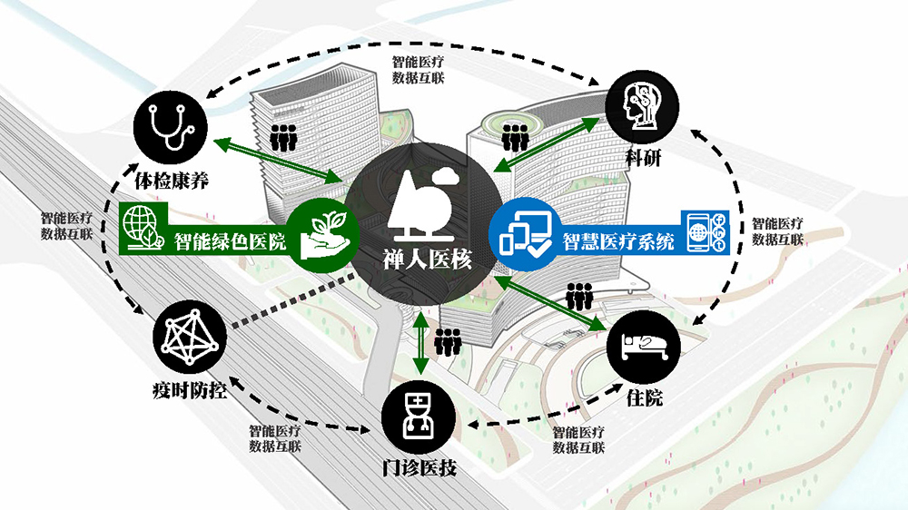 近日,广州市设计院(GZDI)的原创设计方案“生命动脉 · 禅医之核”在佛山市禅城区人民医院总院建设项目勘察及初步设计招标中胜出,被确定为中选实施方案。该项目位于佛山市禅城区南庄镇禅西大道与滨江路交接地块,建筑规模21.18万㎡,设置床位1000张。项目将建设为一所集医疗、教学、科研、预防、保健等功能为一体的现代化综合性三级甲等医院。